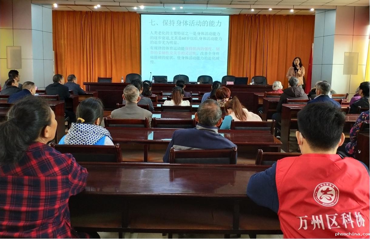 重庆三峡医院高等专科学校的李代英副教授以运动对健康的促进作用为主题,从运动医疗、运动常识等15个方面,为大家科普了运动的好处和正确运动的方式,现场反响激烈;重庆三峡职业学院郎朗副教授从社区安全用电的角度,教会居民如何展开触电自救以及如何安全用电。